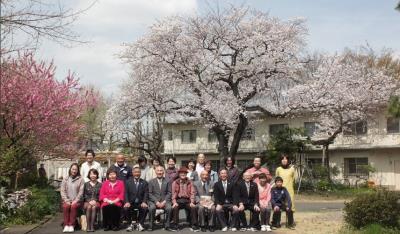 境内地には樹齢100年を越す桜の大木があり、4月の練成会では毎年恒例で桜花爛漫の下で